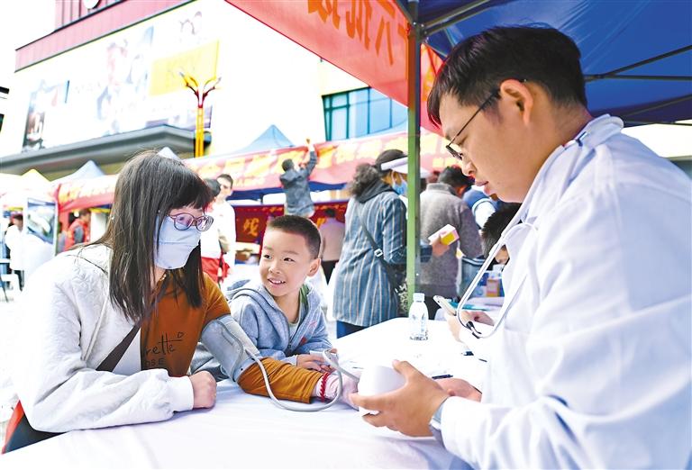 圖為活動現(xiàn)場,醫(yī)生在為市民測量血壓。 西藏日報(bào)記者 王敏 攝