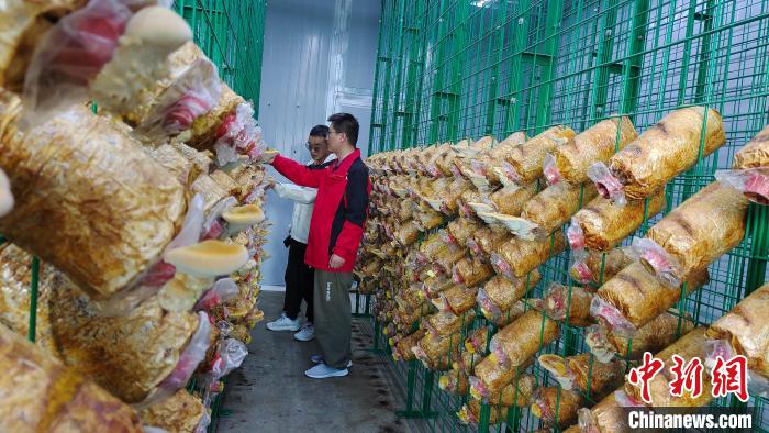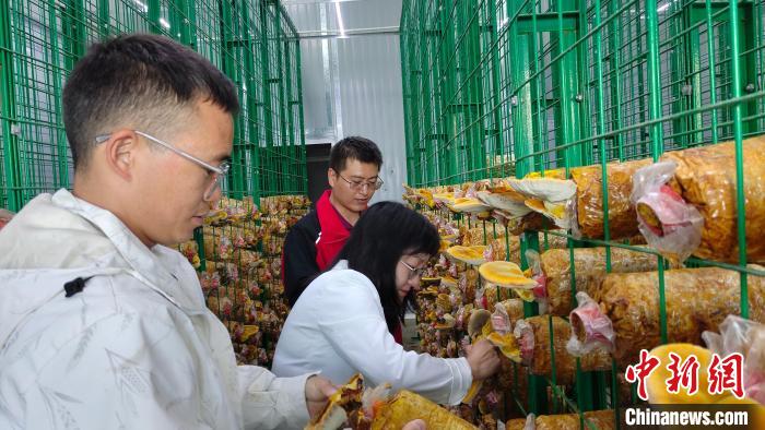 圖為西藏自治區(qū)農(nóng)牧科學(xué)院蔬菜研究所食用菌團(tuán)隊(duì)采收桑黃。貢桑拉姆 攝