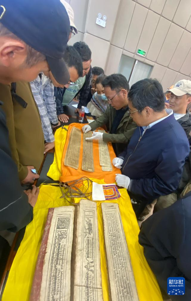 西藏自治區(qū)古籍保護中心專家與現(xiàn)場與會專家互動分享古籍文獻知識。新華社記者 春拉 攝