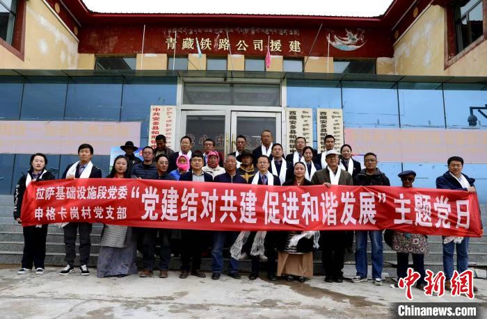 圖為拉薩基礎設施段黨員代表和申格卡崗村黨員代表合影。馬生明 攝