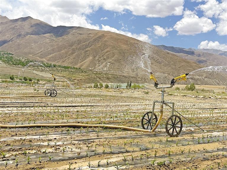 “這些土地,過去沙化太嚴重,無法保存水分,我們經(jīng)過不斷的翻耕改良后,才有了目前的這850畝土地?!蔽鞑厍睾剔r(nóng)業(yè)綜合開發(fā)有限公司工作人員洛珠達瓦介紹。