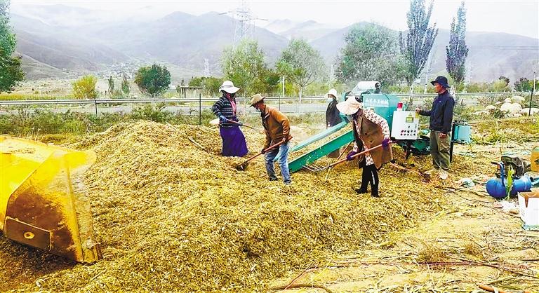 走在雅魯藏布江沿岸,成片的玉米地呈現(xiàn)眼前,讓人意想不到的是,半年前這里還是一片荒地。“我們今年種植玉米850多畝,其中,600多畝的玉米長勢良好,預(yù)計每畝可收玉米飼草2噸以上?!甭逯檫_瓦說。目前,玉米秸稈已陸續(xù)開始收割。