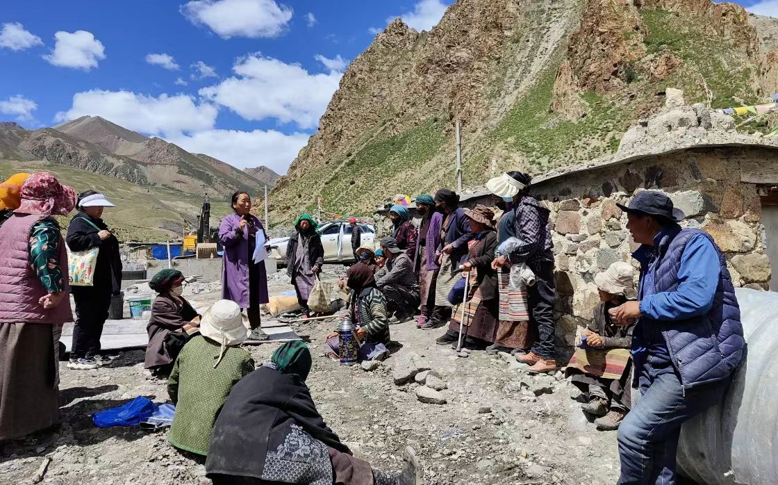 9月初,在雪熱村,縣農(nóng)業(yè)農(nóng)村局的畜牧業(yè)專技人員卓嘎結(jié)合鑄牢中華民族共同體意識(shí)和“三個(gè)意識(shí)”,宣講草原生態(tài)補(bǔ)獎(jiǎng)?wù)?、牛羊出售補(bǔ)貼、農(nóng)機(jī)具購置補(bǔ)貼等與群眾生產(chǎn)生活息息相關(guān)的政策,炎熱的天氣絲毫不影響群眾聆聽宣講的熱情。