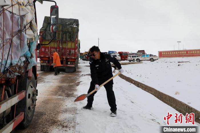 “現(xiàn)在唐古拉山路段處于不間斷堵車狀態(tài),昨天我們這一隊是從下午開始除雪保通,持續(xù)到今天凌晨4點左右才全部疏通。”21日下午,中新網(wǎng)記者連線西藏安多縣公安局交通管理中心秩序中隊隊長達娃云旦,他介紹,10月17日以來,國道109線唐古拉山段持續(xù)降雪,積雪結(jié)冰,道路通行受阻。安多警方“以雪為令”全力救援被困乘客、車輛,進行除雪保通。