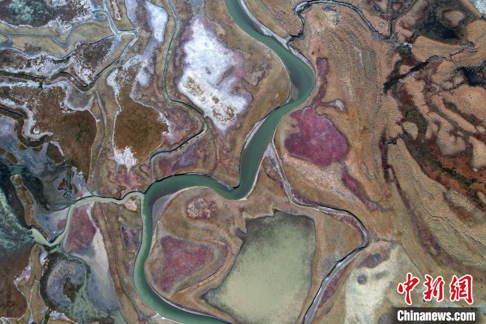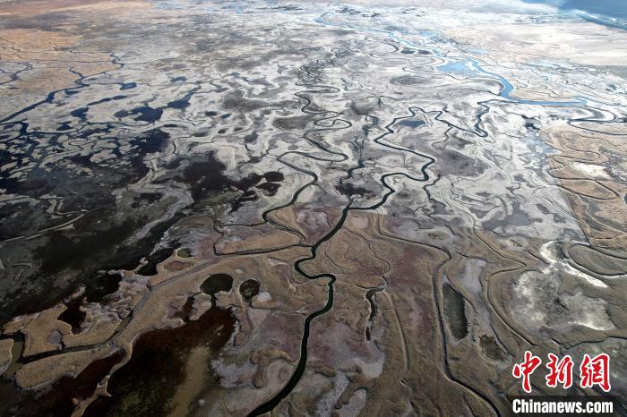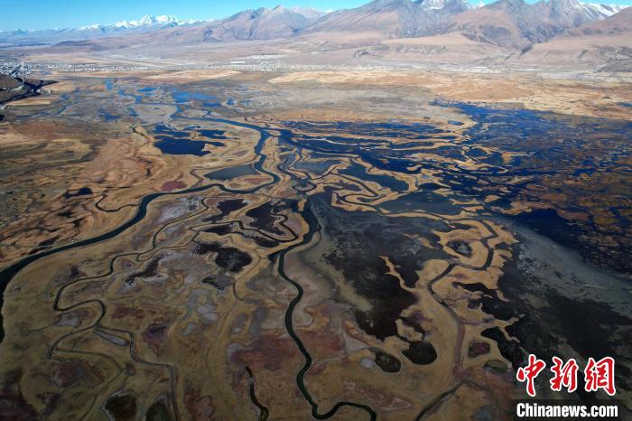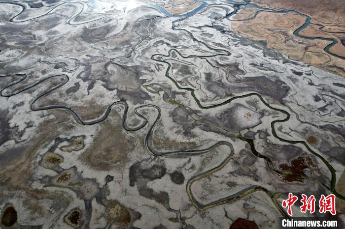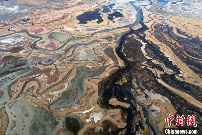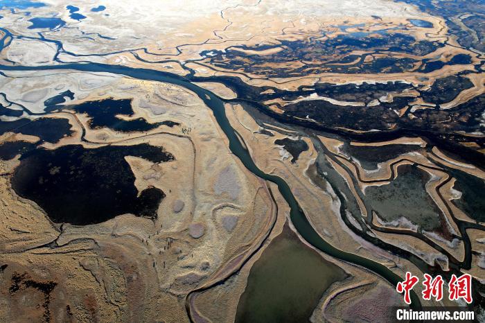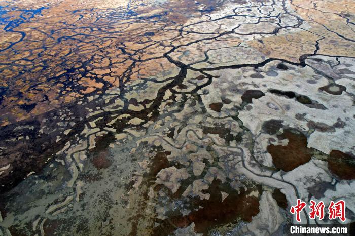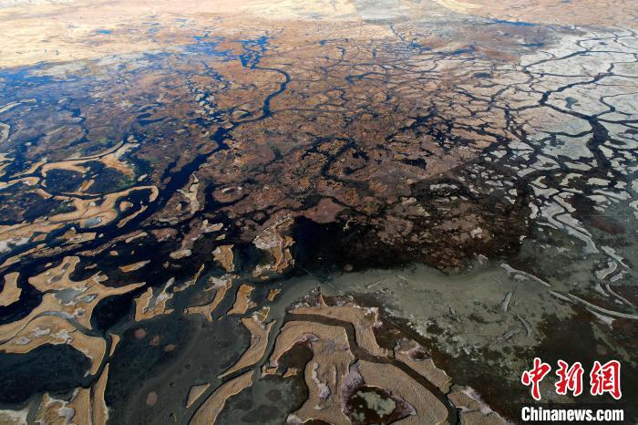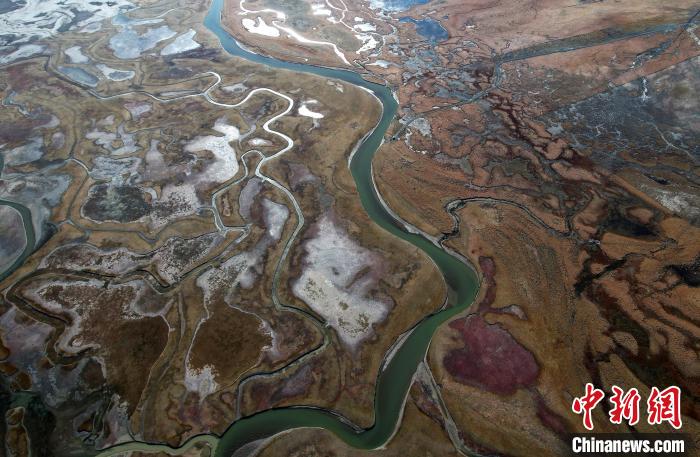 10月24日,深秋的阿熱濕地,阡陌縱橫的水系與枯黃牧草形成了一幅色彩斑斕的畫卷。
