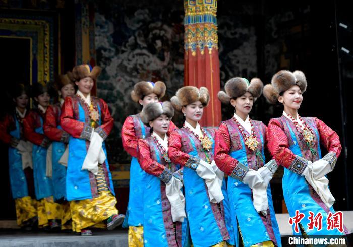 據(jù)悉,堆諧最早流傳于日喀則,是由扎念琴樂器伴奏的舞蹈。扎念琴是堆諧“邊彈、邊唱、邊舞”表演風(fēng)格形成的關(guān)鍵。作為日喀則市桑珠孜區(qū)的重要非遺項(xiàng)目之一,堆諧以其獨(dú)特的表演形式,受到了眾多觀眾的喜愛。日喀則市諧欽則起源于1883年,其韻調(diào)古樸,表現(xiàn)獨(dú)特,顯示出濃郁的西藏風(fēng)景和鮮明的地方特色。諧欽演員們精湛的表演技藝、華麗的戲服,將古老的西藏歌舞藝術(shù)完美呈現(xiàn)在這座古建筑前。