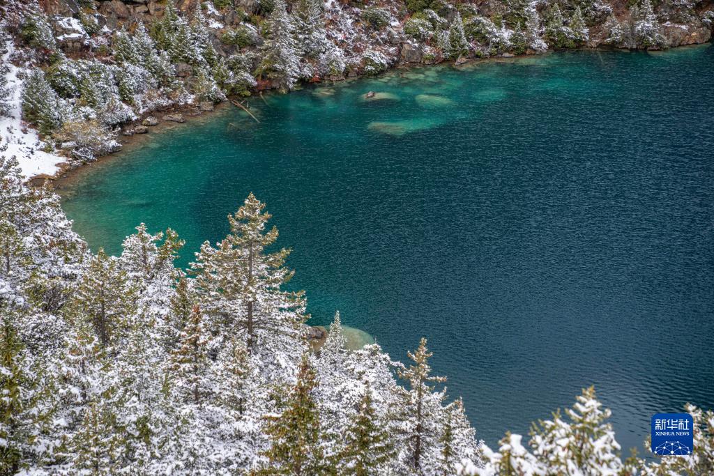這是在西藏昌都市邊壩縣邊壩鎮(zhèn)普玉村拍攝的三色湖中的黑湖(10月27日攝)。新華社記者 孫非 攝