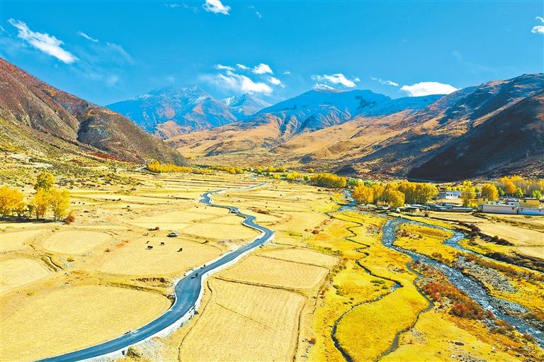 達(dá)孜區(qū),位于拉薩市中南部,素以壯美的秋景而聞名。10月的達(dá)孜,秋意濃厚,遠(yuǎn)處的群山,層林盡染,層次分明的顏色構(gòu)成了一幅絢爛的畫卷。