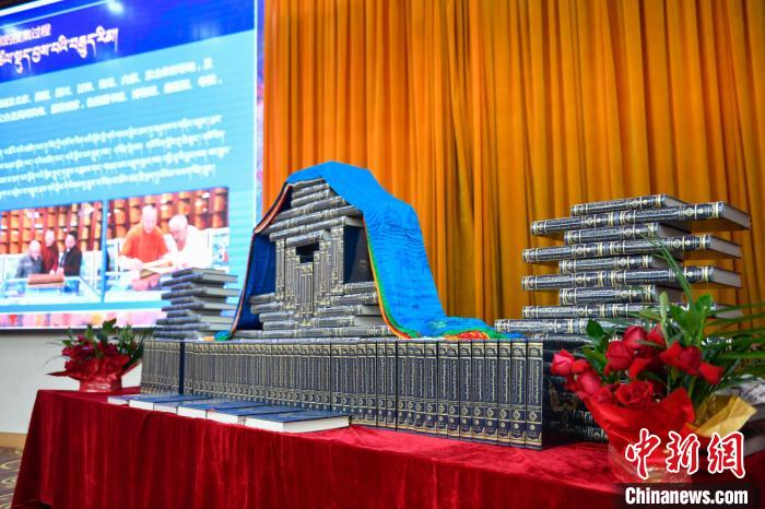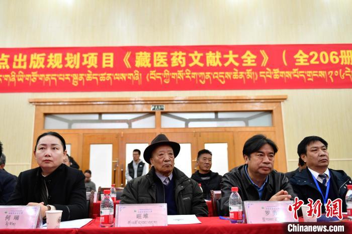 圖為 《藏醫(yī)藥文獻(xiàn)大全》首發(fā)暨贈(zèng)書儀式現(xiàn)場(chǎng)。貢嘎來松 攝