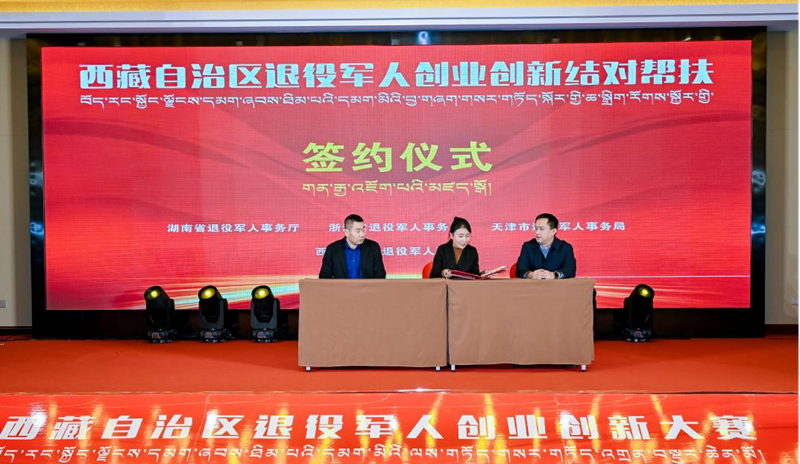 儀式上,西藏自治區(qū)退役軍人事務(wù)廳分別與湖南省退役軍人事務(wù)廳、浙江省退役軍人事務(wù)廳(線上同步簽約)、天津市退役軍人事務(wù)局簽署了結(jié)對幫扶協(xié)議,為助力西藏退役軍人創(chuàng)業(yè)創(chuàng)新,更好地服務(wù)經(jīng)濟(jì)社會發(fā)展奠定了基礎(chǔ)。