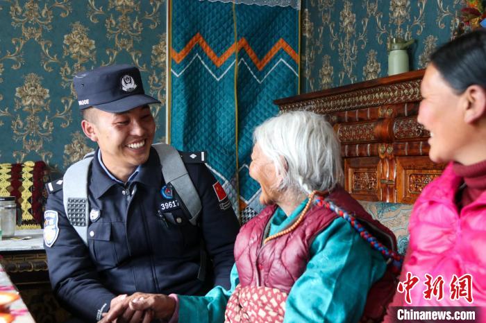 圖為日土邊境派出所民警上門為出行不便的民眾辦理證件。任博 攝