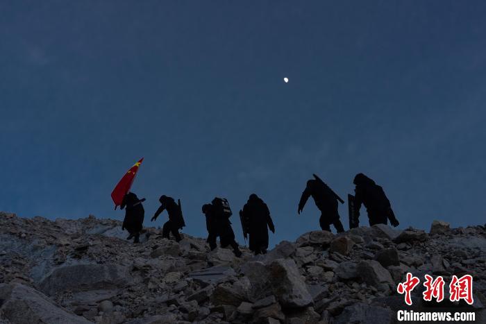 圖為普瑪江塘邊境派出所在海拔5600米的崗布冰川開展邊境巡邏。郭遠(yuǎn)敬 攝
