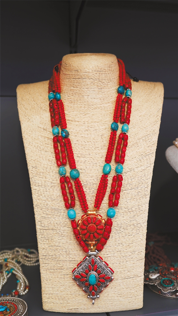 圖為物交會現(xiàn)場展出的藏式項鏈。