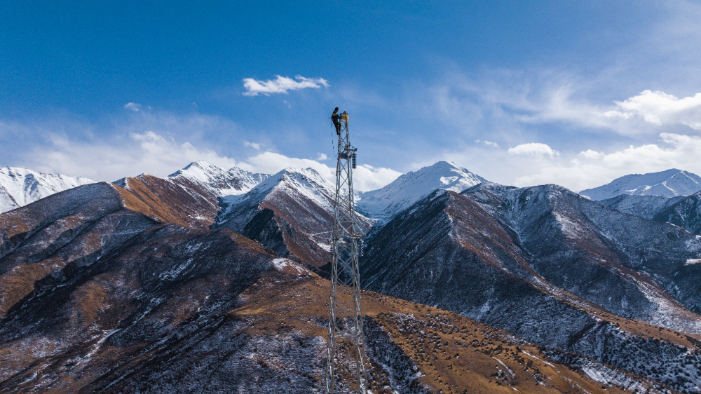 圖為11月30日索縣榮布至丁青縣巴達35千伏線路工程施工人員正在開展塔上作業(yè)。(趙清鵬 攝)
