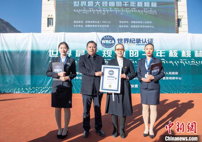 15日,經(jīng)世界紀錄認證(WRCA)官方人員現(xiàn)場審核,西藏山南市加查縣被認證為“世界最大規(guī)模的千年核桃林”。