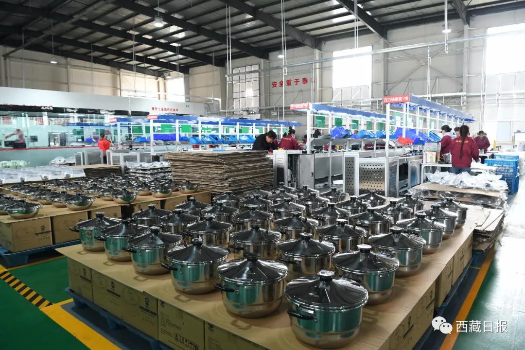 為滿足日漸增長的市場需求,自治區(qū)黨委、政府加大招商引資力度,全面優(yōu)化營商環(huán)境,加速推動民生產(chǎn)業(yè)做強做優(yōu)。目前,已引進全球最大的不銹鋼壓力鍋制造商,推動9條生產(chǎn)線落地拉薩實現(xiàn)本地化生產(chǎn),建立覆蓋7地市的9個直營店,直接招收73名、間接帶動近500名農牧民群眾就業(yè)增收。