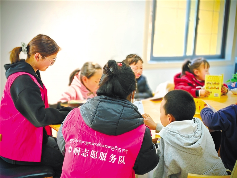 冬日的暖陽(yáng)照在察隅縣竹瓦根鎮(zhèn)扎拉村農(nóng)家書(shū)屋的房頂,暖意融融。在幾名新時(shí)代文明實(shí)踐志愿服務(wù)隊(duì)成員的輔導(dǎo)下,孩子們有的玩游戲、有的做手工、有的寫(xiě)作業(yè)、有的閱讀書(shū)籍。