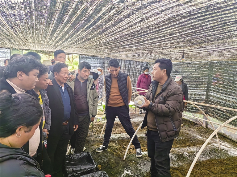 尼日卡林下資源種植合作社技術(shù)人員給村民傳授種植技術(shù)。圖由 格當鄉(xiāng)宣傳板 提供