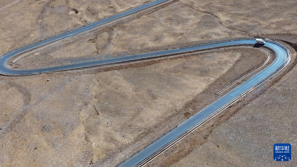 申扎縣供銷合作社為馬躍鄉(xiāng)貝嘎四村偏遠(yuǎn)鄉(xiāng)鎮(zhèn)果蔬配送試點項目直銷點配送新鮮果蔬的貨車,行駛在盤山公路上,這個村距離申扎縣城150公里(無人機照片,1月5日攝)。新華社記者 旦增尼瑪曲珠 攝