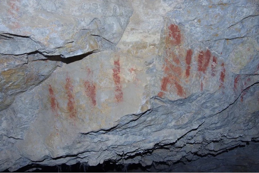 該洞穴的史前文化遺存,于2018年7月在西藏自治區(qū)文物保護研究所和中國科學院古脊椎動物與古人類研究所聯(lián)合組織的舊石器考古調(diào)查中發(fā)現(xiàn)。經(jīng)國家文物局批準,2018-2023年期間,考古隊連續(xù)開展了6個年度的正式考古發(fā)掘。 除了發(fā)現(xiàn)上萬件各類文化遺物,一號洞壁還發(fā)現(xiàn)了排列有序的豎條紋、人形輪廓、手掌以及太陽等以紅色赭石繪制的巖畫。