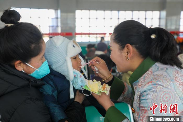 春運首日,拉薩車務段在日喀則站候車大廳開展“溫馨出行 文明出行”主題活動,火車站青年職工帶來了日喀則當?shù)靥厣顝棾槁每退蜕蠝嘏奶鸩?,和旅客一起分享蛋糕慶祝日喀則站第十個春運等活動,營造出喜迎新春的節(jié)日氛圍。