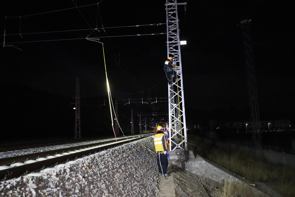 接觸網(wǎng)源源不斷地為電力火車提供電力,就像電氣化鐵路的“血管”?!拔覀兙褪歉咴姎饣F路的醫(yī)生,每天夜里,為它的‘血管’做一場細(xì)致的手術(shù),保證接觸網(wǎng)安全暢通?!崩罘e王說,細(xì)致的夜間作業(yè)確保了拉林鐵路在春運期間能夠安全、高效地運行。