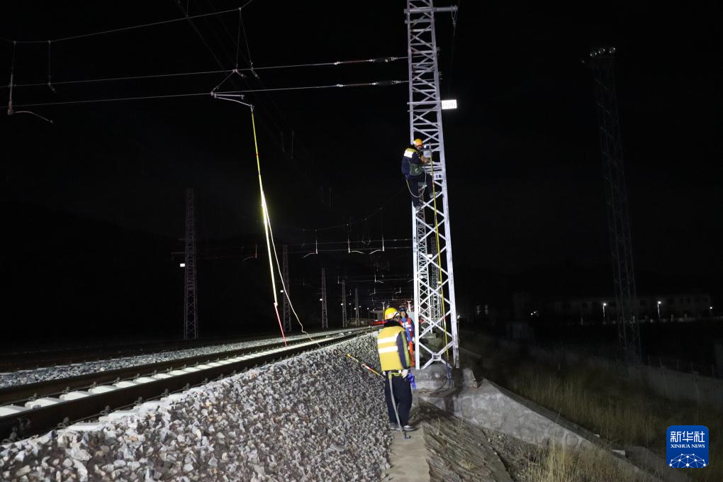 接觸網(wǎng)源源不斷地為電力火車提供電力,就像電氣化鐵路的“血管”?!拔覀兙褪歉咴姎饣F路的醫(yī)生,每天夜里,為它的‘血管’做一場(chǎng)細(xì)致的手術(shù),保證接觸網(wǎng)安全暢通?!崩罘e王說,細(xì)致的夜間作業(yè)確保了拉林鐵路在春運(yùn)期間能夠安全、高效地運(yùn)行。