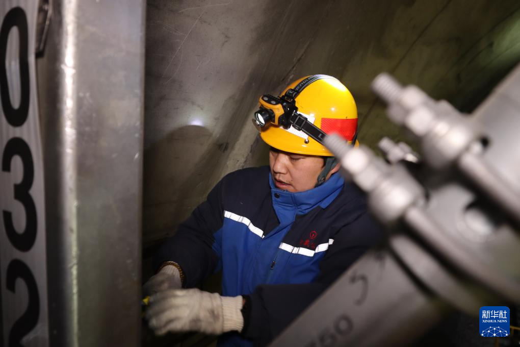 拉薩南接觸網(wǎng)維修隊(duì)工長(zhǎng)對(duì)接觸網(wǎng)設(shè)備進(jìn)行檢修(1月24日攝)。新華社記者 劉洲鵬 攝