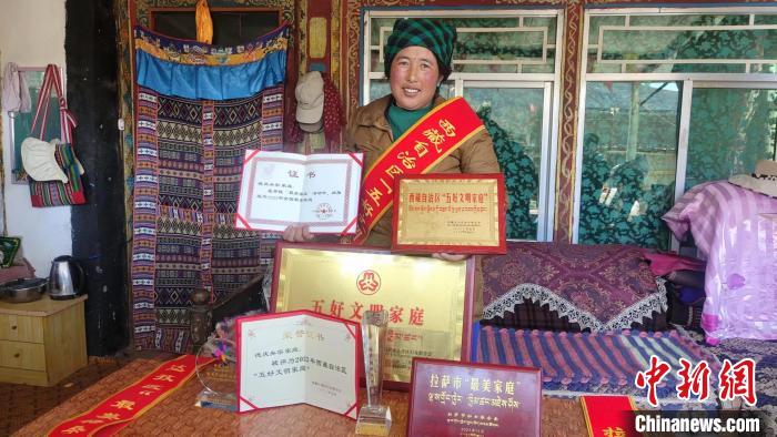 全國(guó)最美家庭、西藏自治區(qū)“五好文明家庭”、西藏自治區(qū)“最美民族團(tuán)結(jié)家庭”、拉薩市“最美家庭”……當(dāng)記者走進(jìn)德慶央宗家的客廳時(shí),首先映入眼簾的便是擺放在藏式柜子上的諸多榮譽(yù)證書(shū)及獎(jiǎng)杯,這是夫妻二人在平凡的生活中,遵紀(jì)守法、孝敬老人、樂(lè)于助人等贏得的肯定與榮譽(yù)。