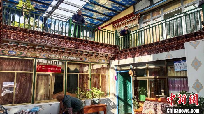 “樓上樓下都有陽光,很暖和?!?月2日,西藏網(wǎng)絡(luò)媒體新春走基層活動(dòng)記者一行來到山南市瓊結(jié)縣昌嘎村,此時(shí)該村四組村民多吉在家里的二樓陽光房?jī)?nèi)準(zhǔn)備過年用的經(jīng)幡,他的老伴則在一樓庭院內(nèi)整理衣物,午后的陽光透過玻璃窗落在沙發(fā)上,坐在這里感覺不到冬的寒意,郁郁蔥蔥的綠植讓這所溫馨的居所生機(jī)勃勃。