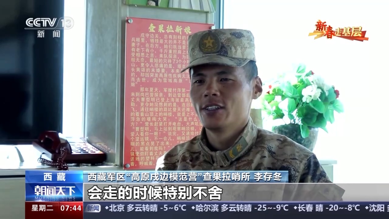 西藏軍區(qū)“高原戍邊模范營”查果拉哨所 李存冬:因為有國才有家,只要國守好了,才能有家,才能更好激勵我們戍守邊關(guān),能夠更好扎根高原。