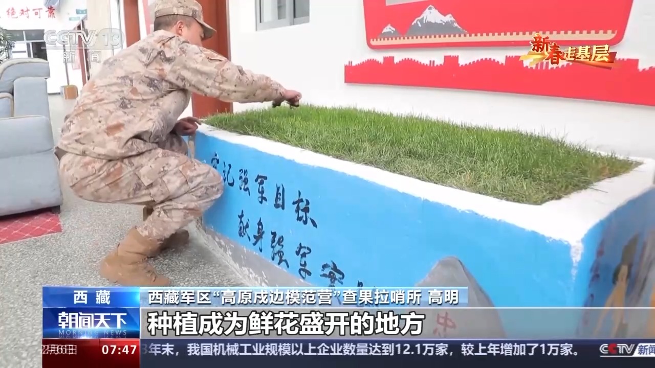 西藏軍區(qū)“高原戍邊模范營”查果拉哨所 高明:我們的戰(zhàn)士現(xiàn)在正在養(yǎng)護我們的花草。在海拔5318米的這個地方,我們的花草非常難長,為了能夠營造這種氛圍,我們還是想把這個地方能夠種植成為鮮花盛開的地方。