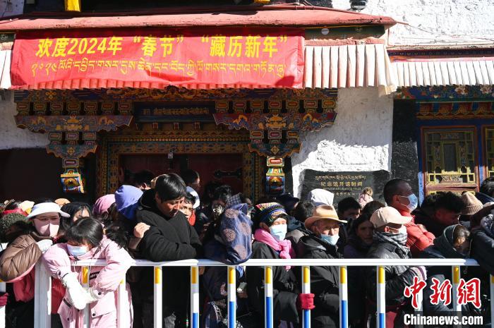 圖為2月10日,排隊進(jìn)大昭寺祈福的信眾。中新社記者 趙朗 攝