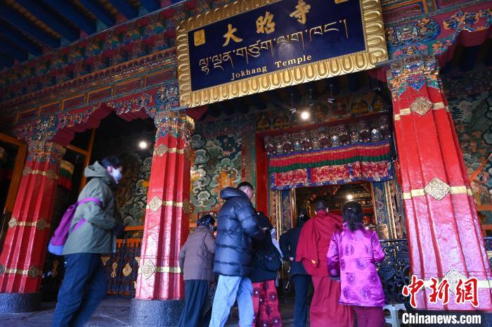 圖為2月10日,信眾陸續(xù)進(jìn)入大昭寺。中新社記者 趙朗 攝