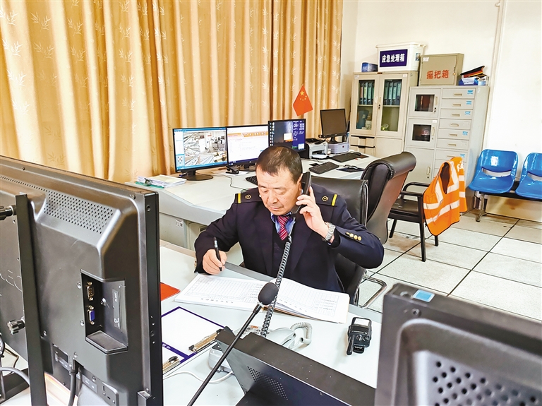“21時05分,室外防護正?!痹谧鳂I(yè)現(xiàn)場,偉色措姆本著高度的責(zé)任心,眼神銳利,一邊通過對講機和室內(nèi)聯(lián)系,一邊瞭望并認真在防護記錄上做好記錄。