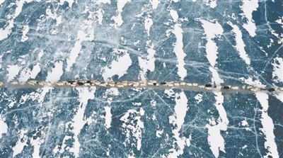 湛藍色的冰面上,牧羊人吹著口哨,驅(qū)趕著羊群,朝著遠方前進,留下一串串蹄聲和羊鞭揮舞聲。