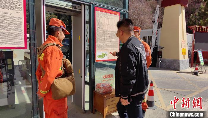 圖為林芝市森林消防支隊在重點景區(qū)設立執(zhí)勤點收繳火種。張靖椿 攝