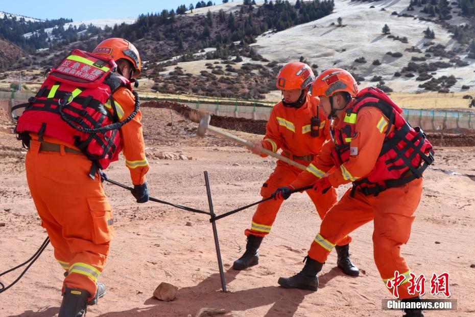 西藏芒康縣平均海拔4300多米,橫斷山脈由北向南縱貫縣境,因特殊地形導(dǎo)致山高谷深、川流密布,加之海拔較高,給各類救援帶來(lái)極大挑戰(zhàn)。此次訓(xùn)練模擬農(nóng)牧民在冰面上驅(qū)趕羊群時(shí)不慎踩破冰層掉入水中,要求救援人員快速營(yíng)救。