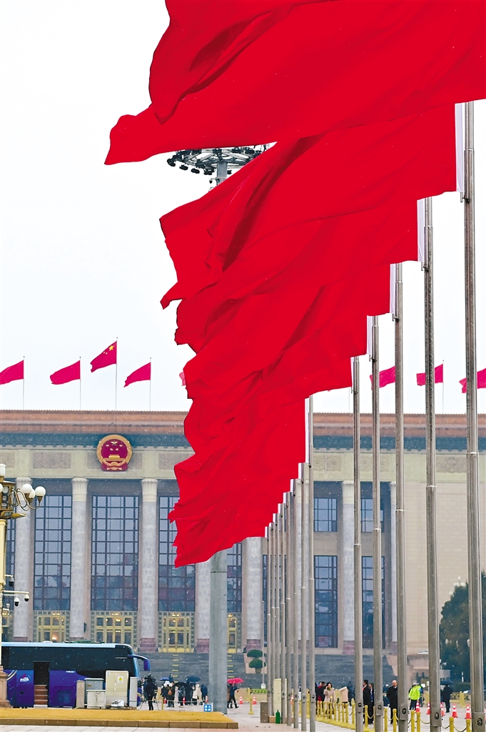 圖為全國(guó)人大代表聆聽(tīng)政府工作報(bào)告后,滿懷信心走出人民大會(huì)堂。記者 旦增西旦 攝