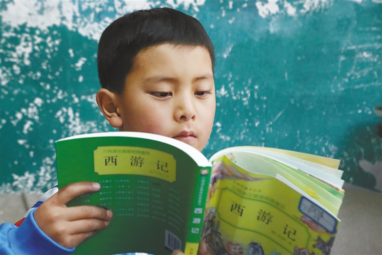拉薩市第一小學(xué)一年級(jí)5班學(xué)生圖丹嘉認(rèn)真閱讀同學(xué)贈(zèng)送的課外讀物。