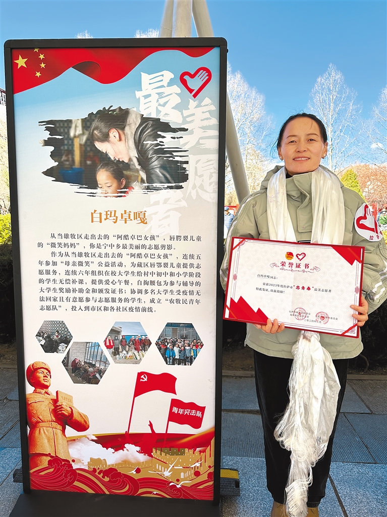 這是榮獲拉薩市2023年度“最美志愿者”稱號(hào)的白瑪卓嘎。