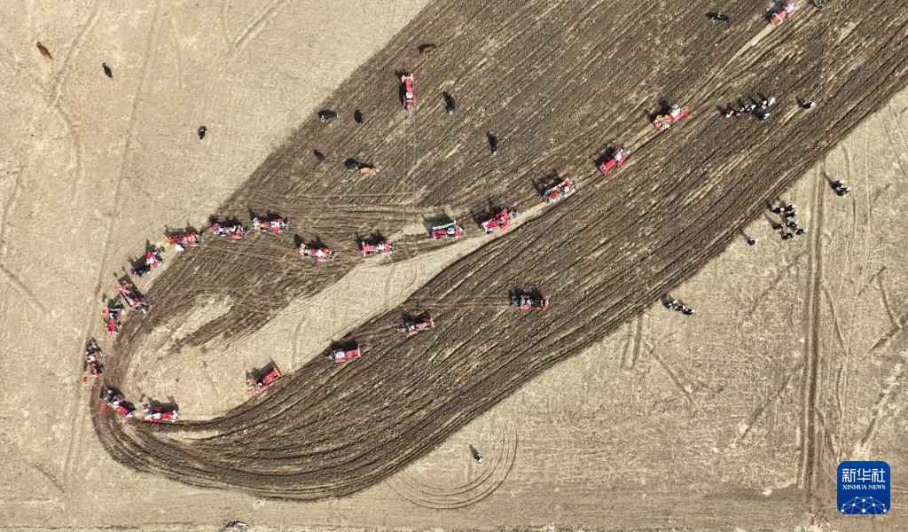 這是3月16日拍攝的西藏拉薩市林周縣強嘎鄉(xiāng)春耕儀式現(xiàn)場(無人機(jī)照片)。新華社記者 晉美多吉 攝