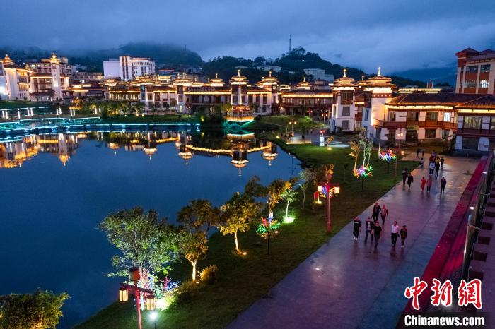 圖為2021年5月18日傍晚,西藏墨脫縣民眾在蓮花湖畔散步,該縣曾被稱為“高原孤島”,2013年10月公路通車后發(fā)展日新月異。江飛波 攝