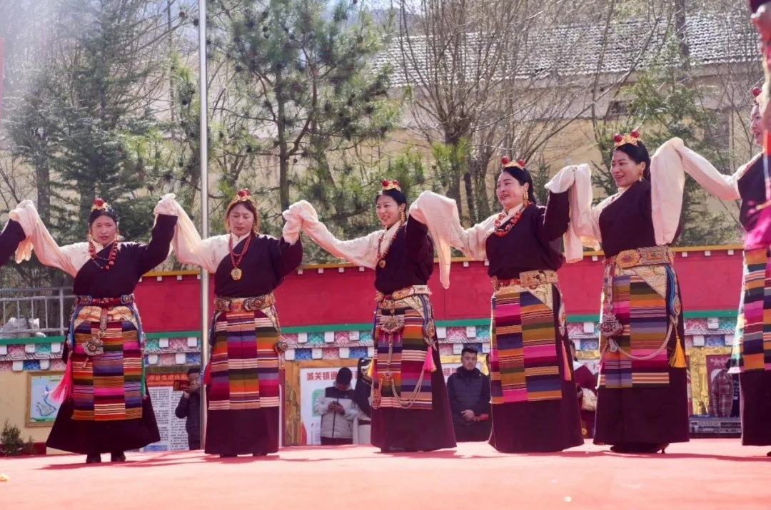 初春的通夏村,嫩柳吐新、彩旗飄飄,鮮艷的五星紅旗迎著風(fēng)招展,人們盛裝而來(lái),空氣中洋溢著節(jié)日的氛圍。在觀眾的熱烈掌聲中,《銘記歷史》《翻身農(nóng)奴把歌唱》《歡騰的熱巴》……一首首經(jīng)典的歌曲,一段段熱情四溢的舞蹈盡情展現(xiàn)了康巴兒女對(duì)黨的感激和幸福生活的歌頌。