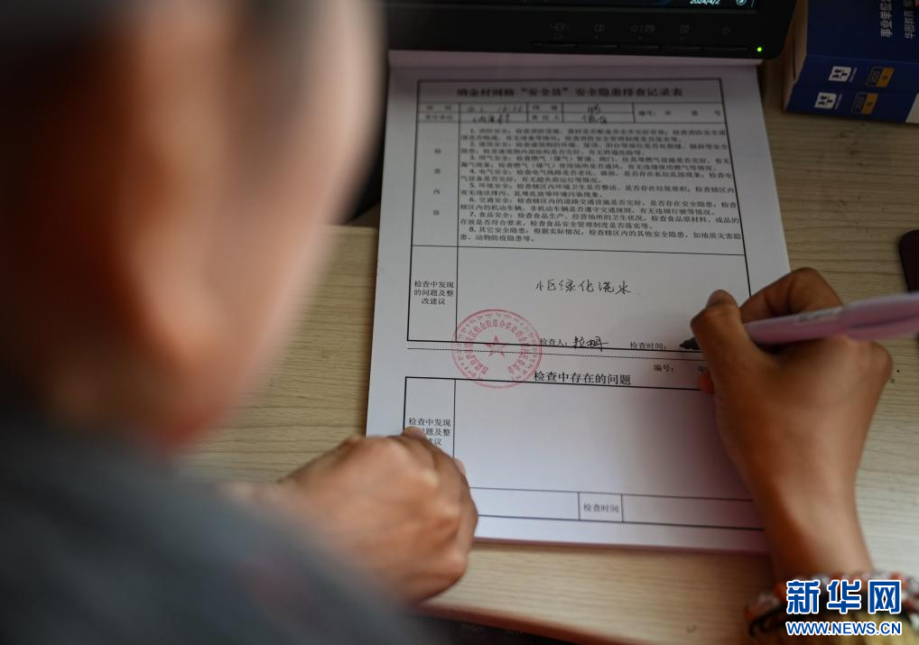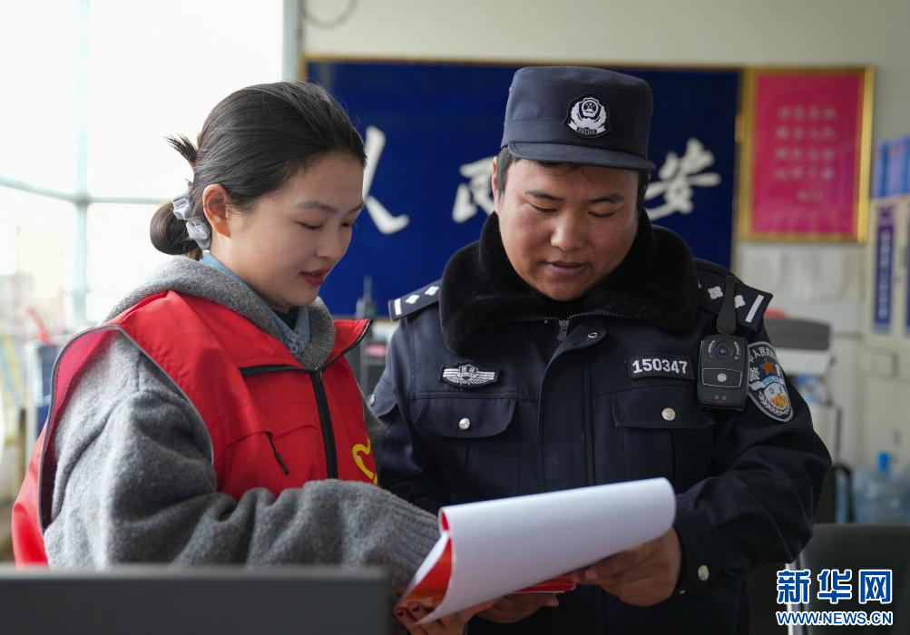 4月2日,納金村工作人員在和轄區(qū)民警對接網(wǎng)格相關(guān)工作。(新華社記者 晉美多吉 攝)