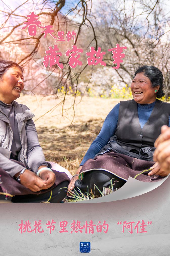 午休時(shí),尼瑪曲吉(右二)與村民在桃樹下聊天(4月1日攝)。新華社記者 丁增尼達(dá) 攝