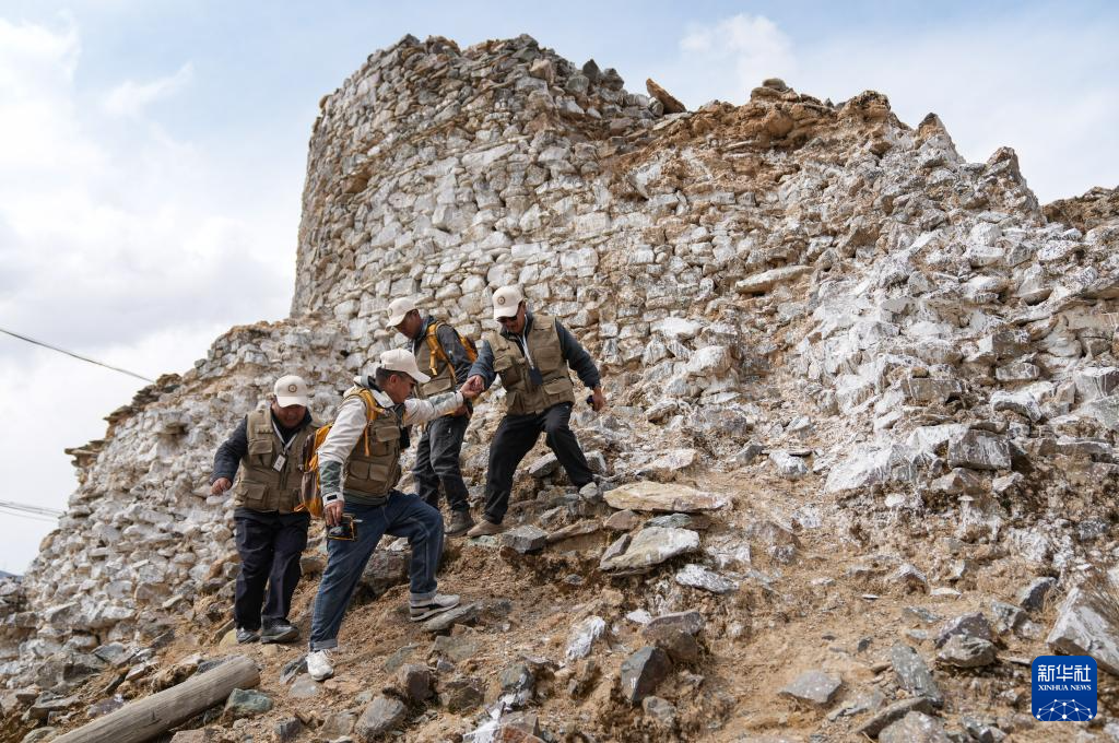 4月11日,普查人員在曲果崗塔群遺址現(xiàn)場(chǎng)開(kāi)展數(shù)據(jù)采集。新華社記者 晉美多吉 攝