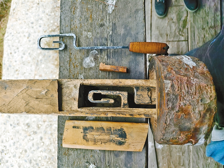 圖為八蓋鄉(xiāng)日卡村糧倉的木鎖。