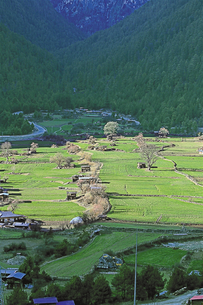 雖然日卡村與外界相隔重重深山峽谷,但人口少、資源多,既有農(nóng)田種植的小麥青稞、油菜等,也有牧場(chǎng)放養(yǎng)的成群牛羊,還有大片樹林可采集松茸、羊肚菌、天麻等,連松針都被勤勞的村民收集漚肥,村里成群放養(yǎng)的藏香豬也在證明這里庭院經(jīng)濟(jì)的豐富。
