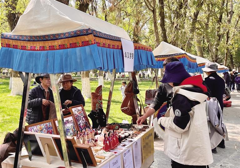 市民、游客正在選購(gòu)文創(chuàng)產(chǎn)品。西藏日?qǐng)?bào)記者 旦增蘭澤 攝